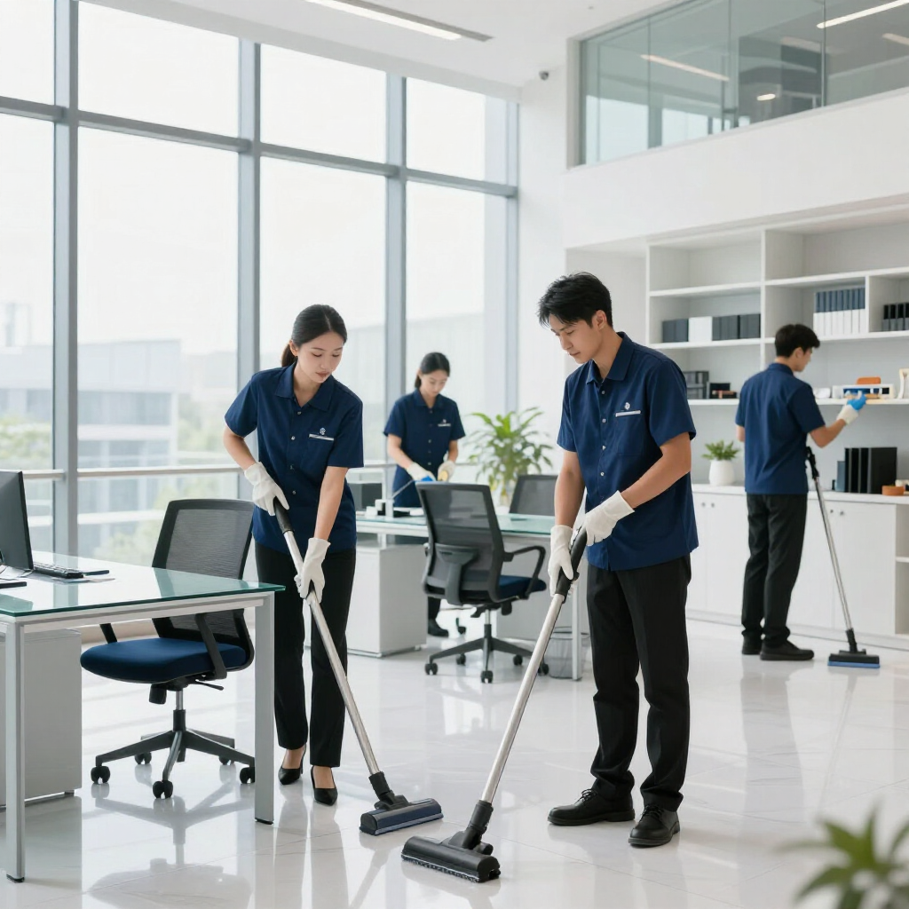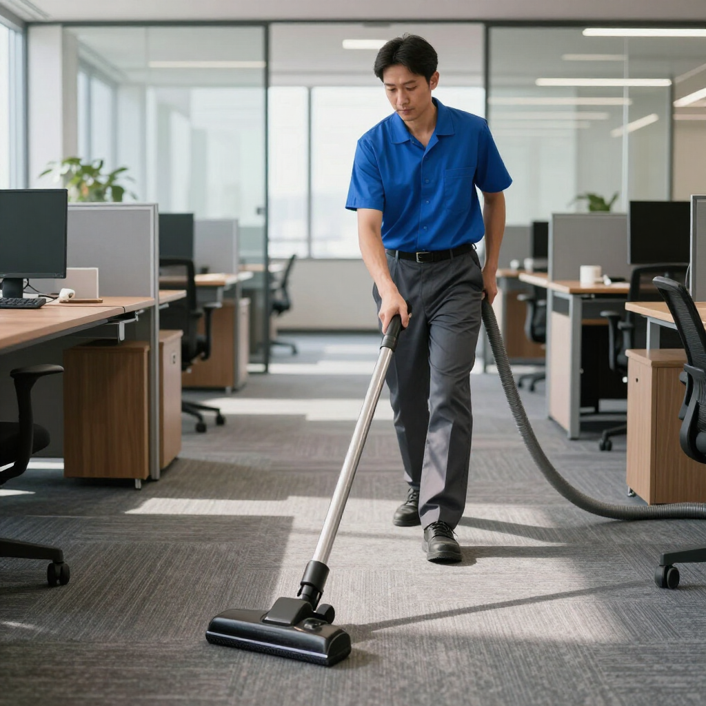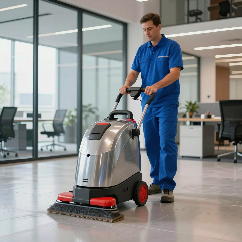 Grondige reiniging van kantoren, bedrijfsruimtes en gemeenschappelijke gebieden met professionele apparatuur.