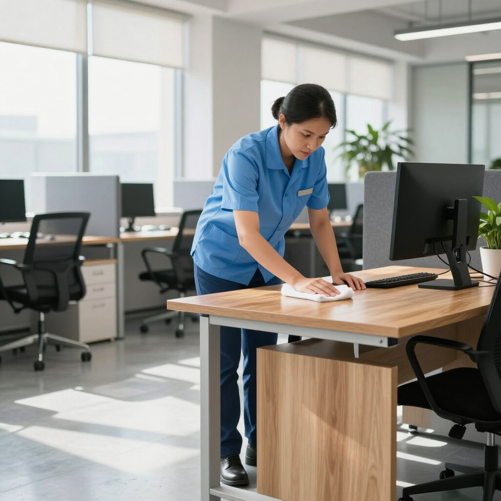 Regelmatige reiniging van werkplekken, gemeenschappelijke ruimtes en sanitaire voorzieningen voor een frisse en hygiënische kantooromgeving.