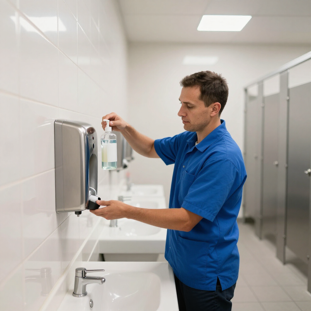 Regelmatig schoonmaken en aanvullen van sanitaire ruimtes voor een hygiënische en aangename omgeving.